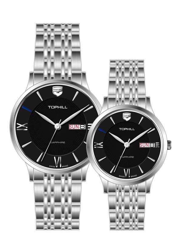 ĐỒNG HỒ TOPHILL TA050G.S1192 & TA050L.S1192 Cặp Máy quartz(pin) Kính sapphire 5ATM