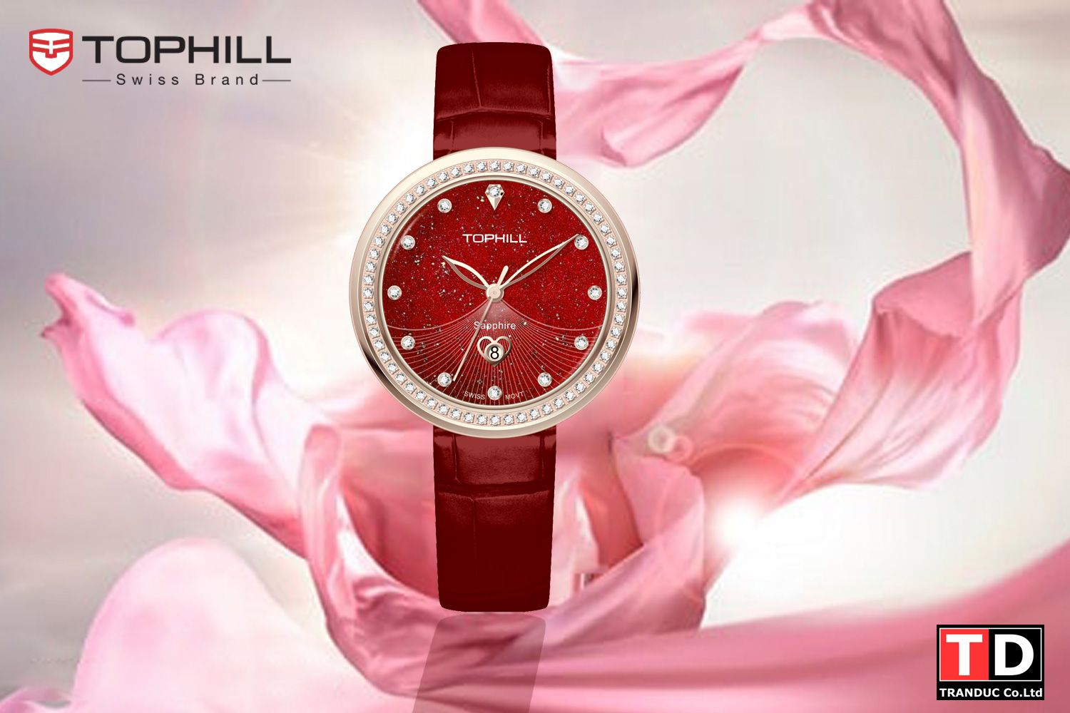 ĐỒNG HỒ TOPHILL TE065L.MR3737 Nữ Máy quart(pin) Dây da Kính sapphire 3ATM