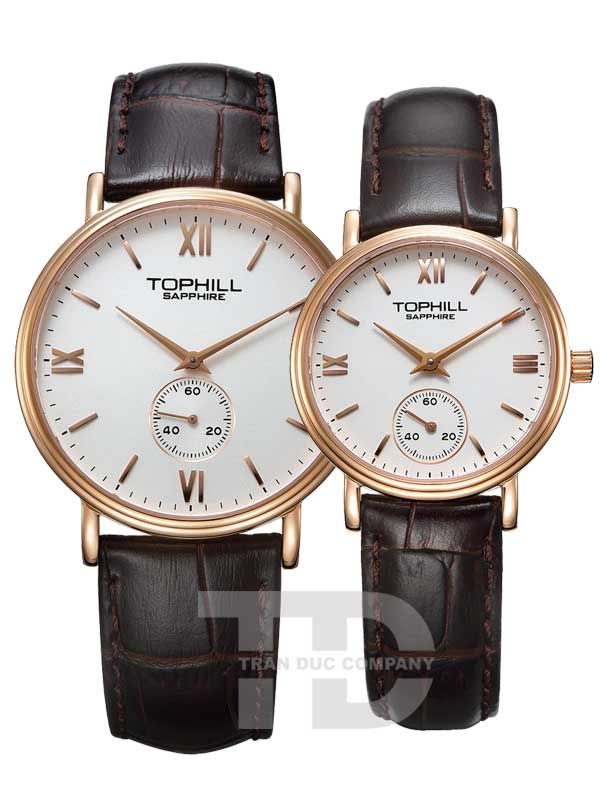 ĐỒNG HỒ TOPHILL TA021G.PZ3297 + TA021L.PZ3297 Nam+Nữ Dây da Máy Quartz (pin) Kính Sapphire 3ATM