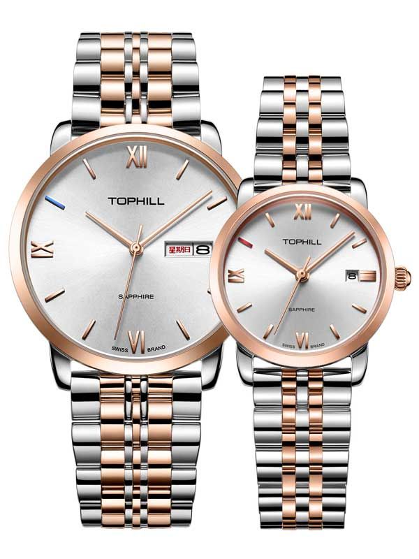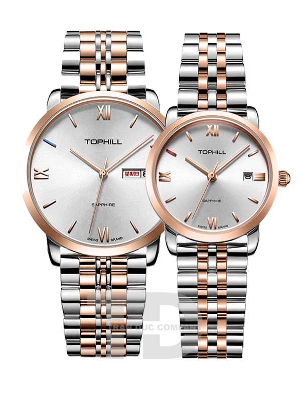 ĐỒNG HỒ TOPHILL TA035G.S7292 + TA035L.S7292 Nam, Nữ Dây thép 316L Máy Quartz (pin) Kính Sapphire 5ATM